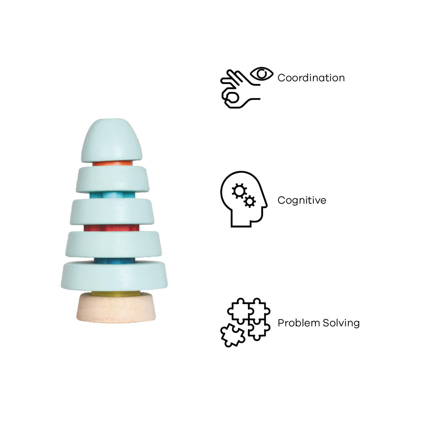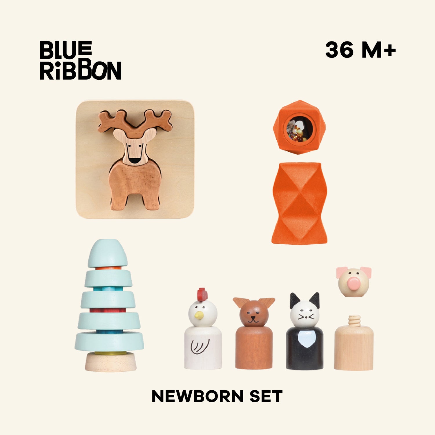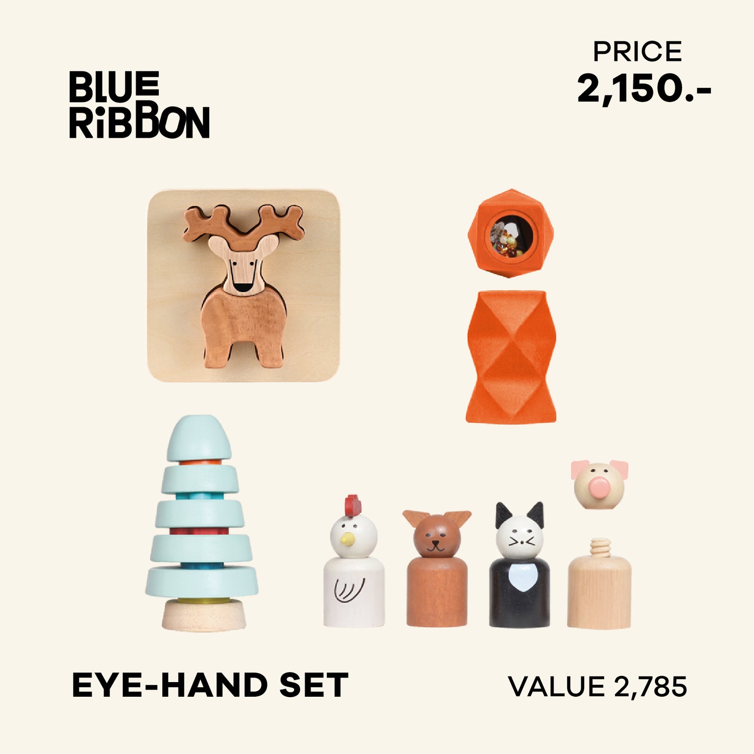 This Eye-Hand Coordination gift set consists of shape sorting puzzles, discovery toy, and construction toy. Each toy enhance fine motor and coordination skills as well as provoking the sense of wonders and creativity. The set is great for children age from 36 months.