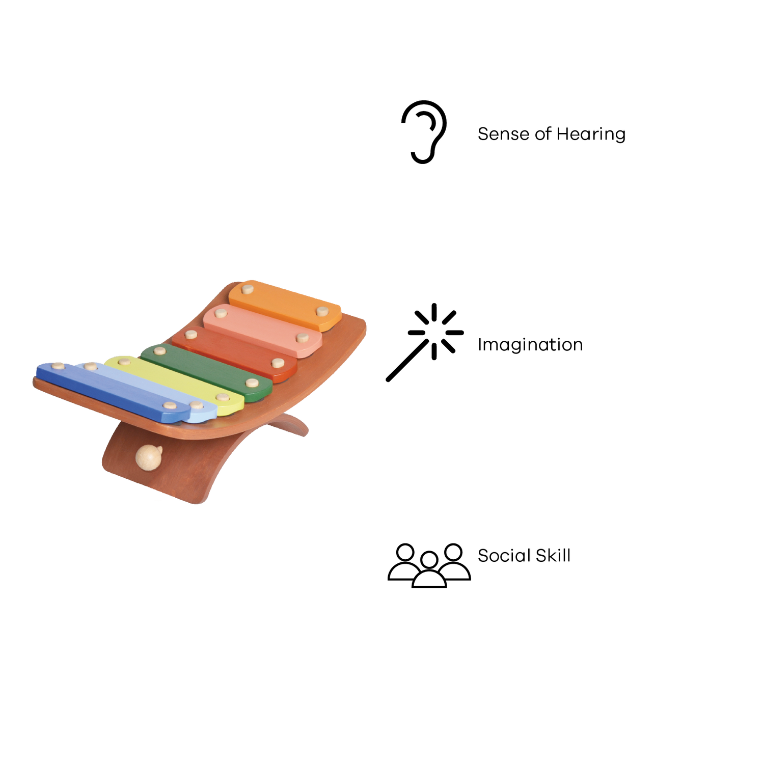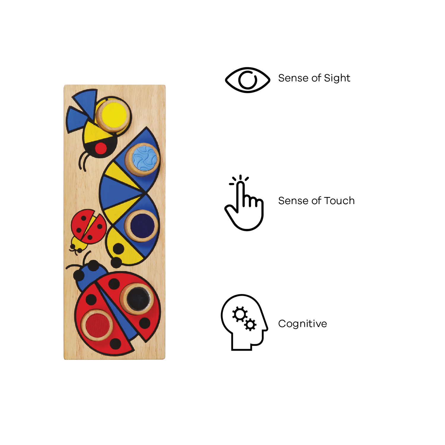 Sensory Gift Set consists of toys that help enhance children's senses. Musical instruments help improve the sense of hearing and provoke their creativity. The matching tactile game can stimulate the sense of touch and coordination.