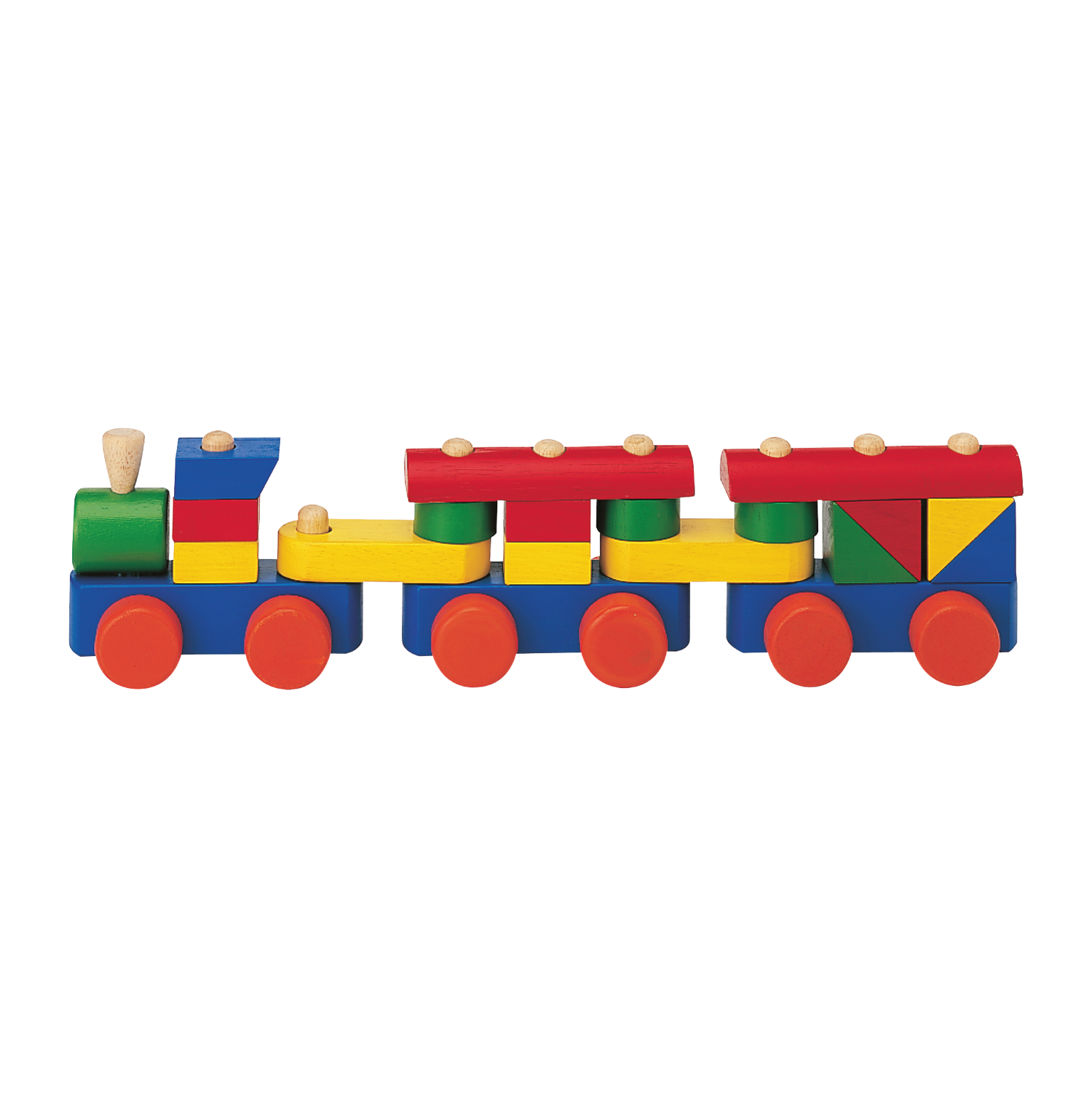 Various sizes and shapes blocks can be configured on the wheels base with rods on each car over and over.