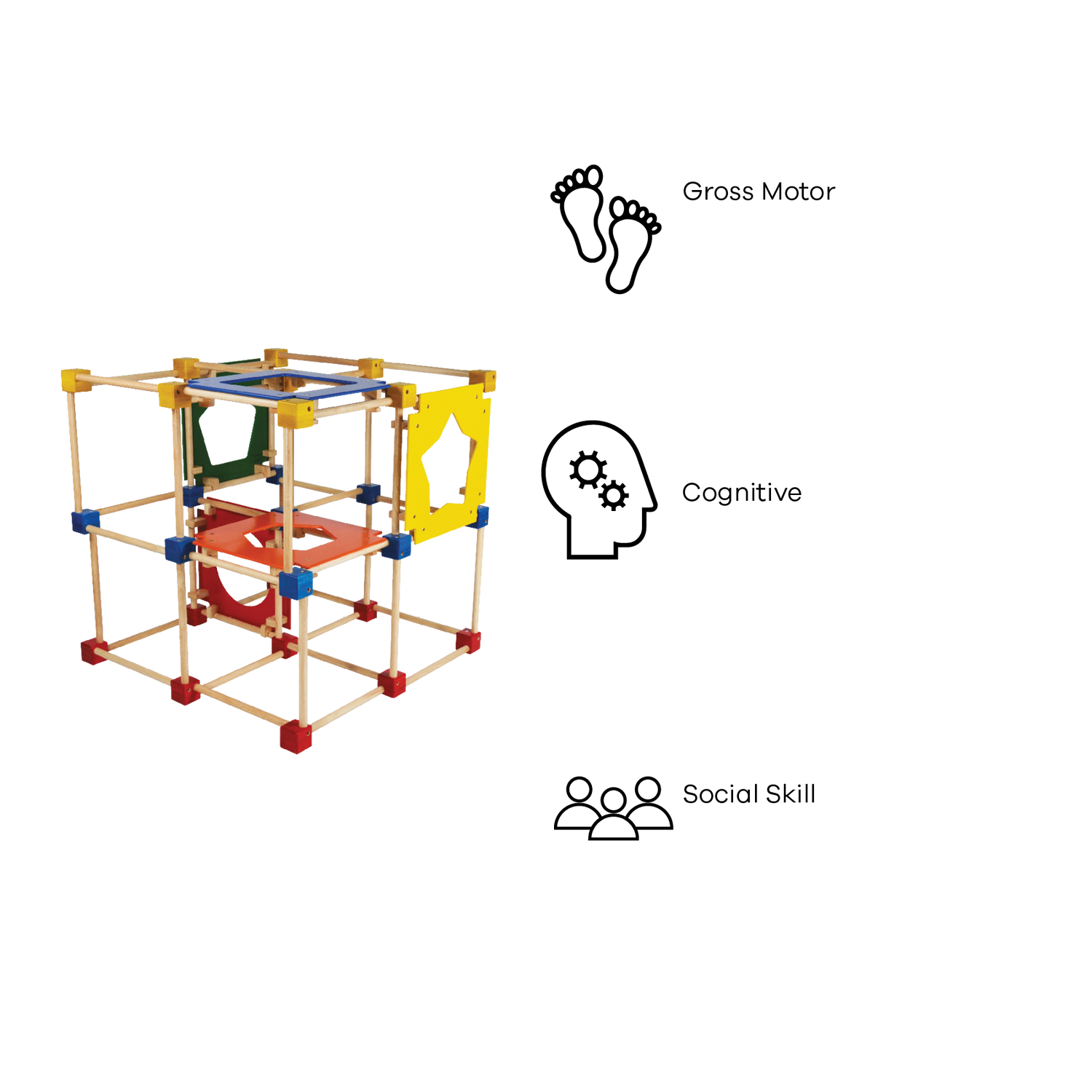 Cube consists of 8 squares of the same size connected with hubs and added with activity boards, sits firmly on the floor and can be flipped to other sides for more exploration.