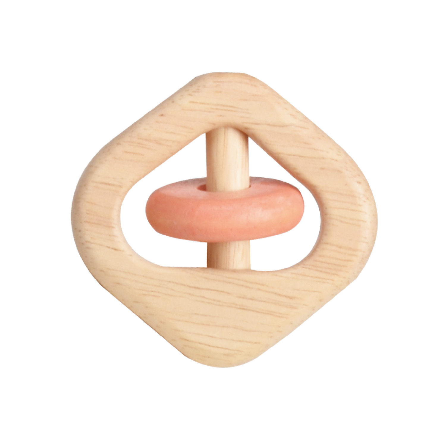 Geo-shaped rattle is minimalist aesthetic with natural tone and plain color. Come in diamond shape.