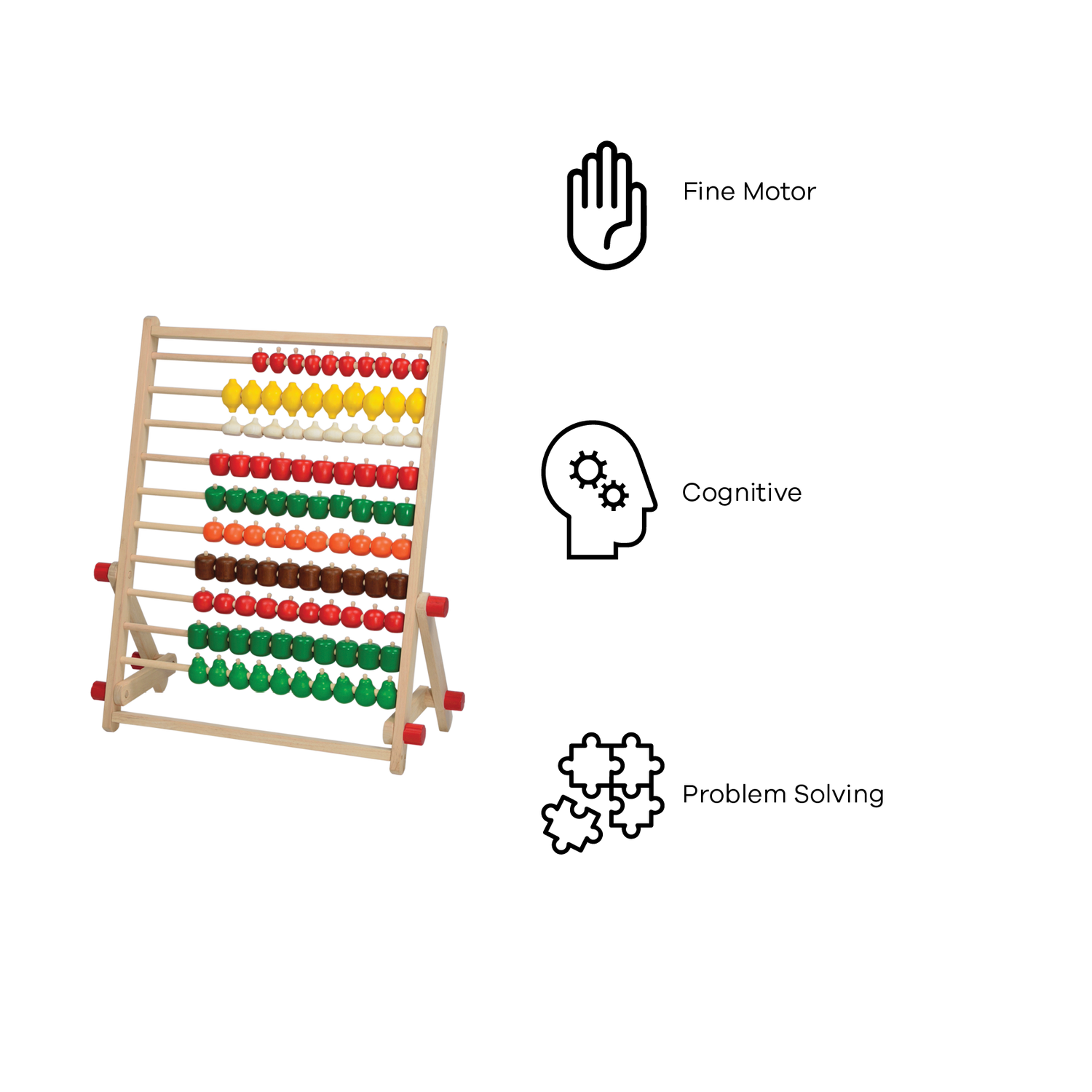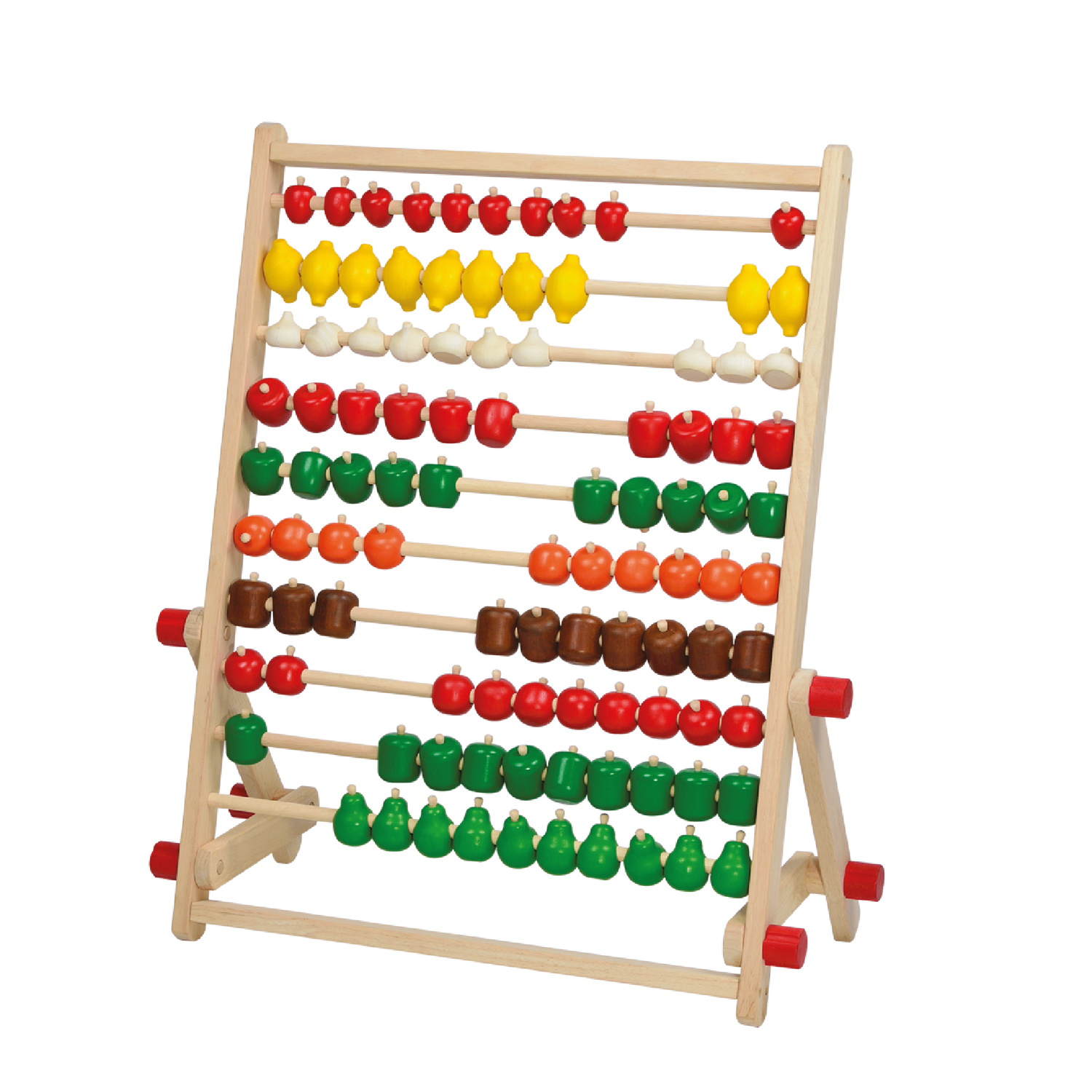 This Fruits & Vegetables Counting Frame stands firmly by self with extra wide support legs.