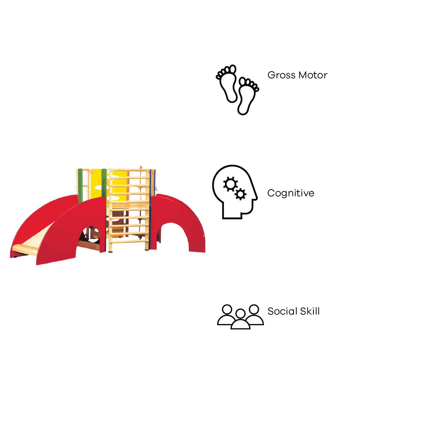 This sturdy, all-in one activity gym offers climbing, crawling, hiding and sliding funs. Holds up to 6 children with total weight of 440 lbs., room with 8 feet ceiling height required.