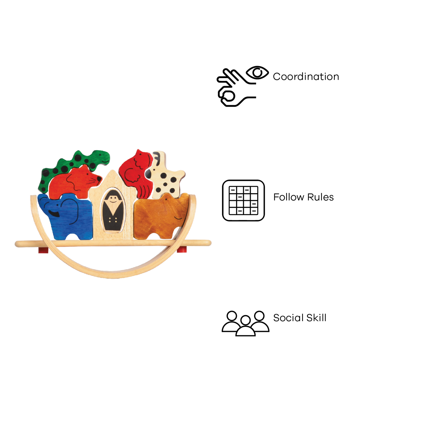 Place animals to the corresponding places on the boat while keep the eyes on the boat not to turn over.