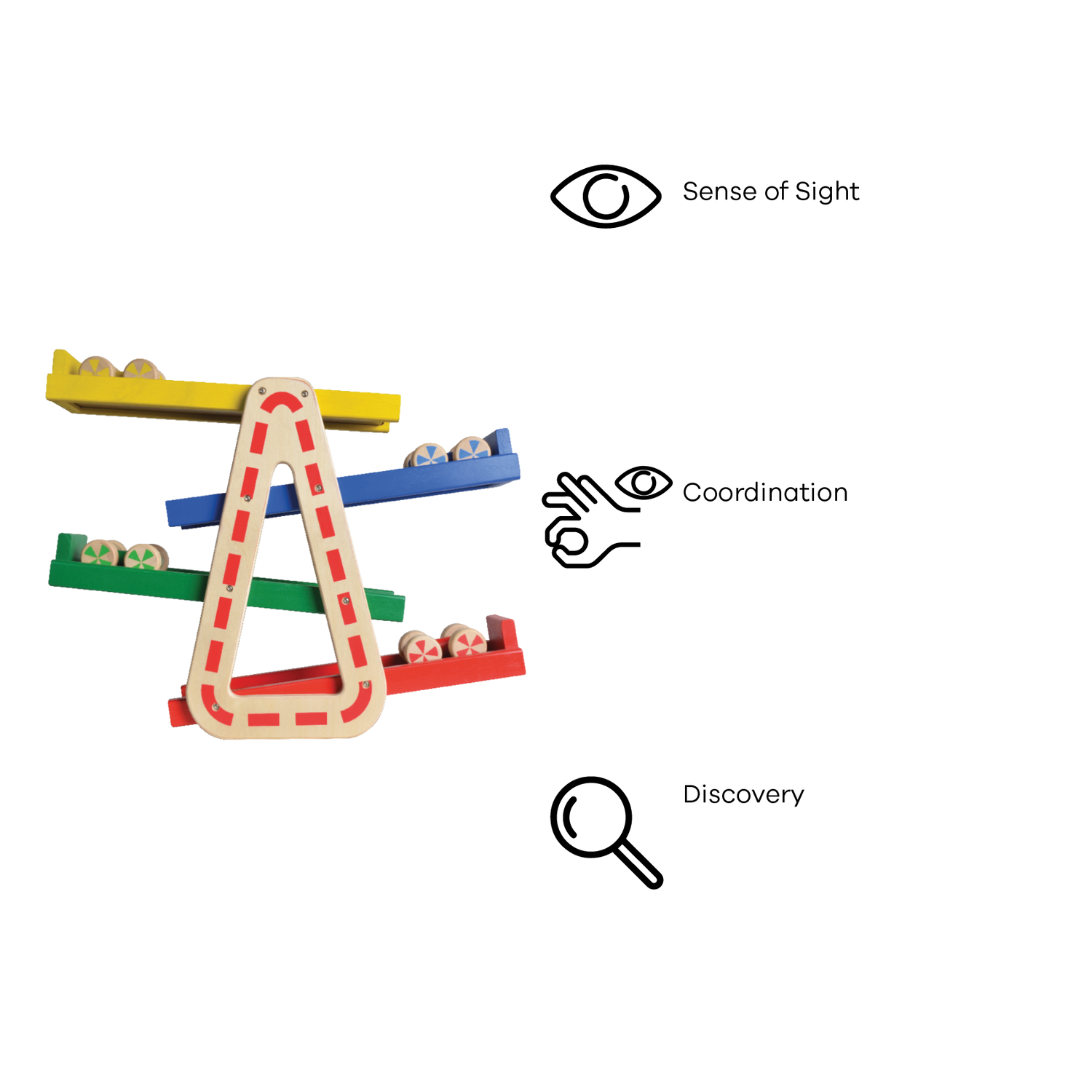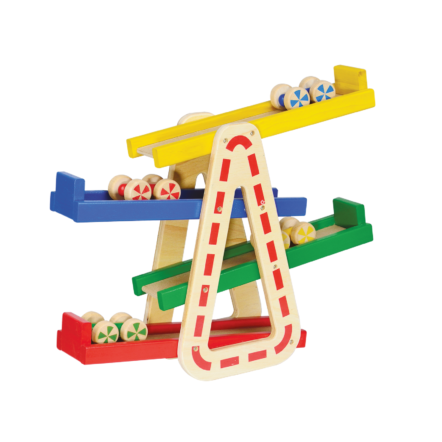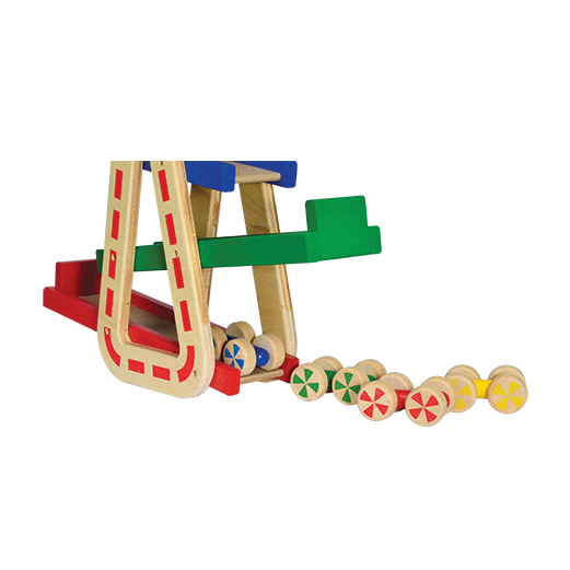Racing toy cars down the speed ramp and refining dexterity skills at the same time. The set comes complete with four competing wooden racing cars The ramp racer requires no assembly.