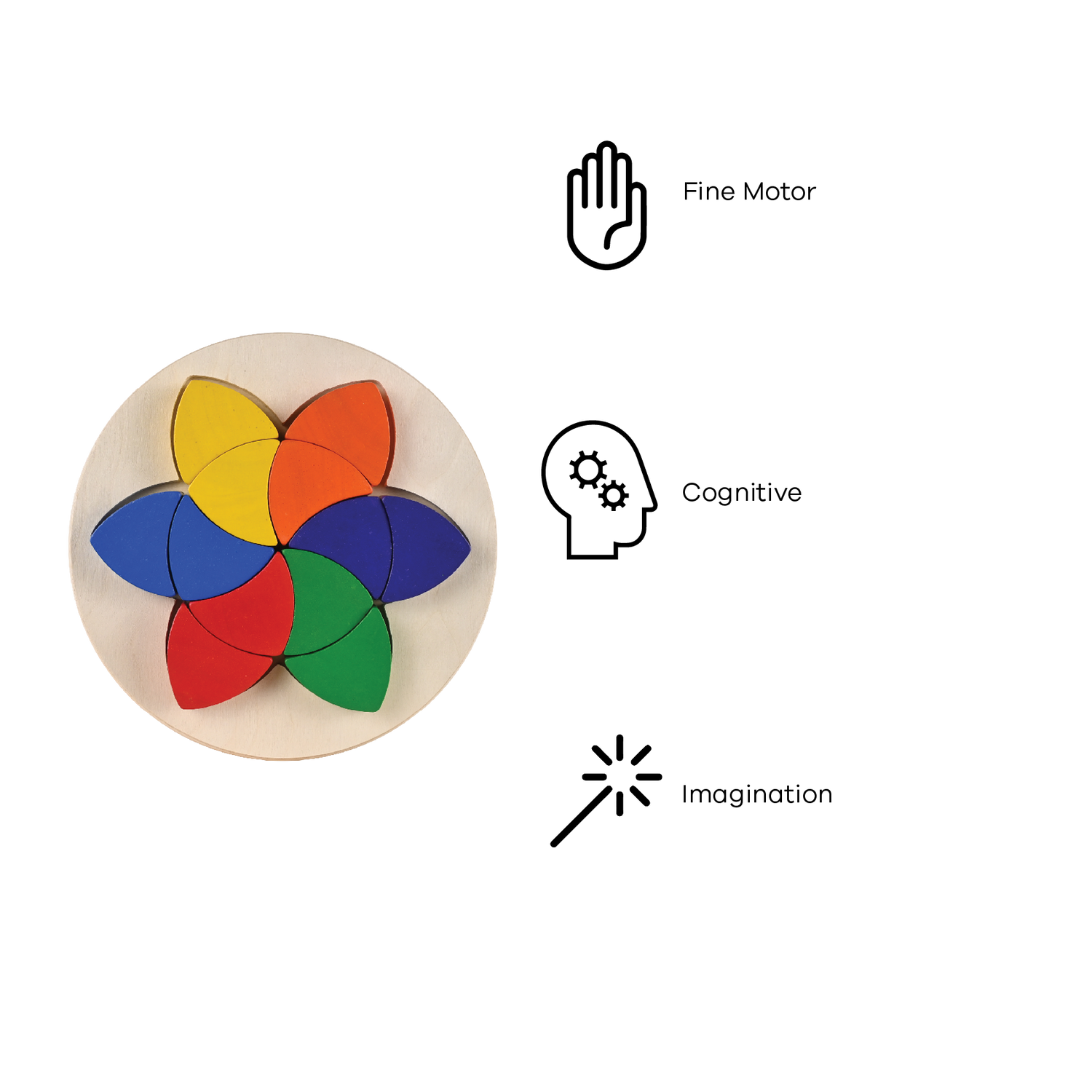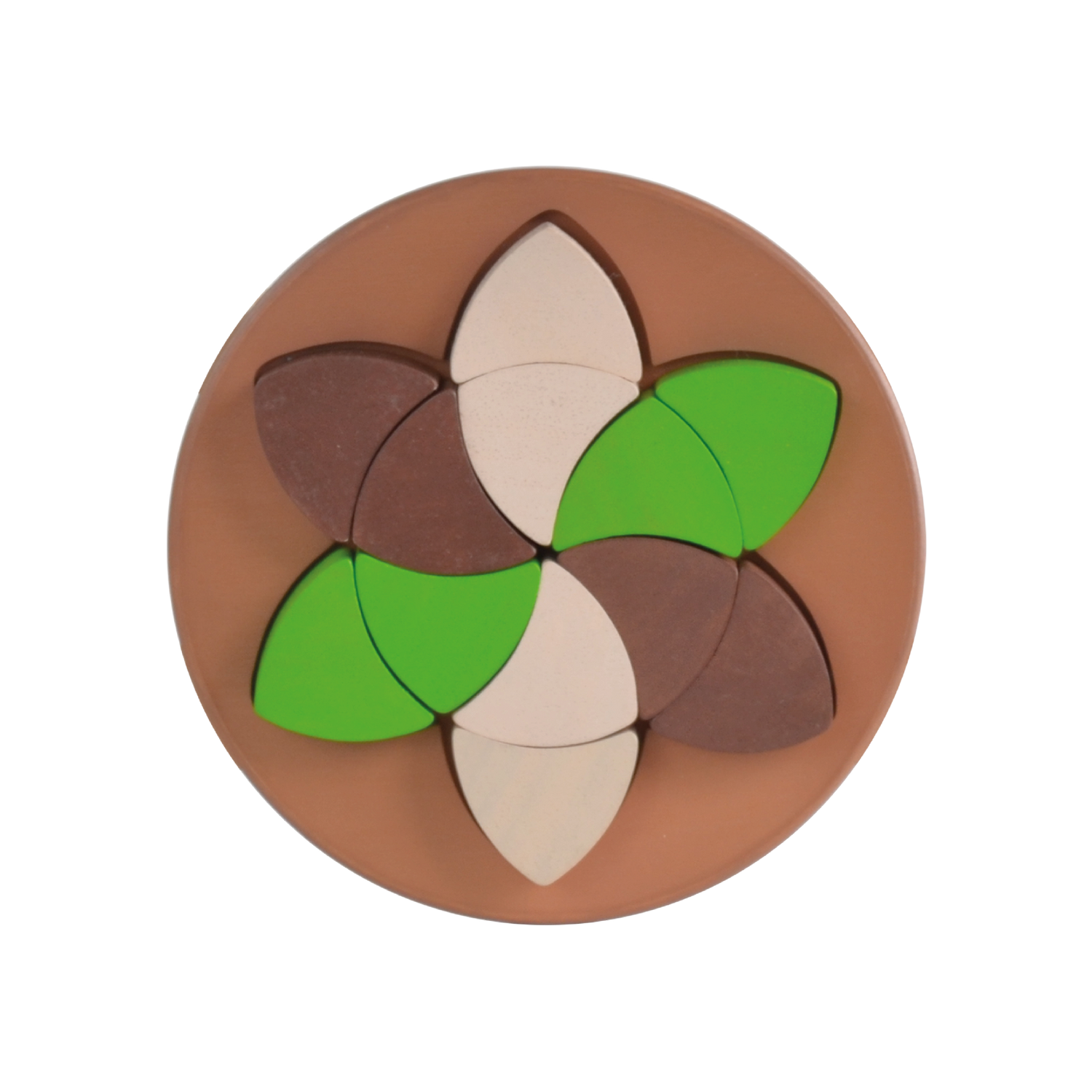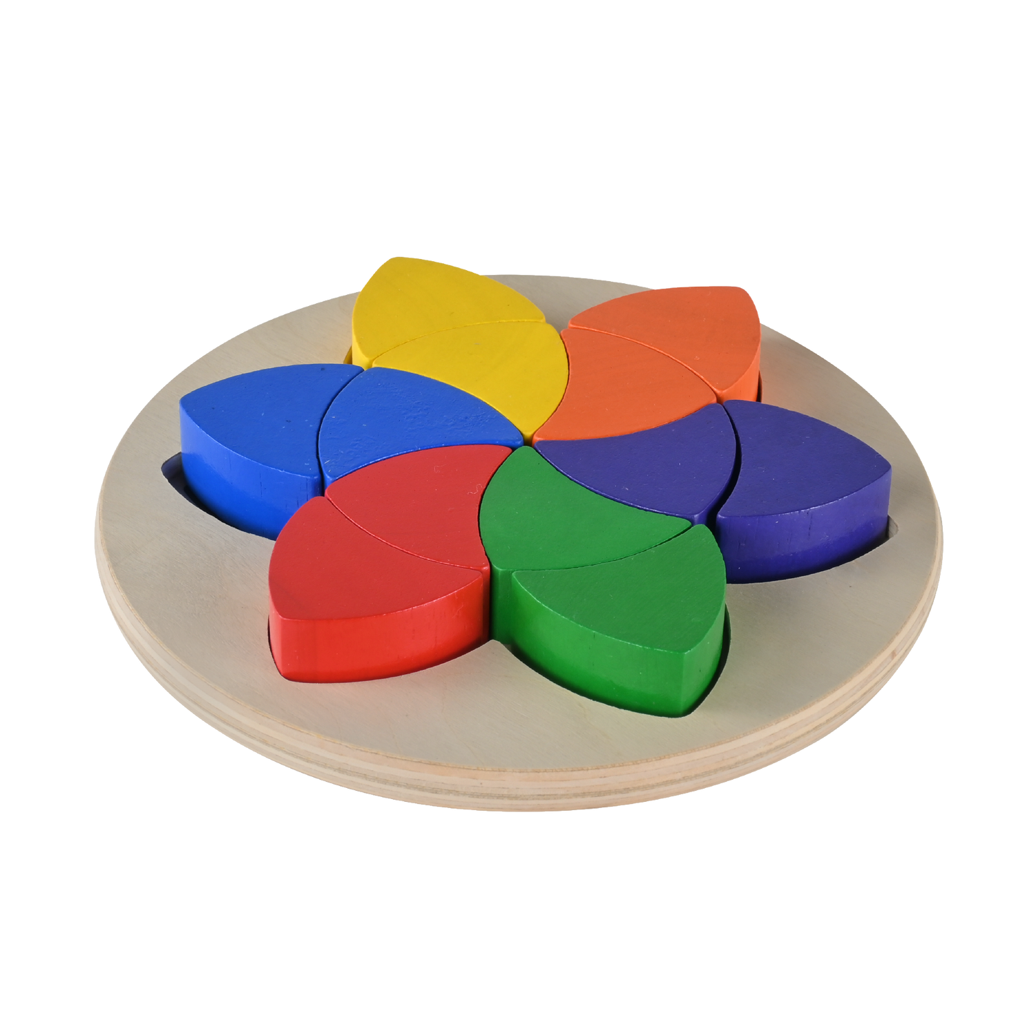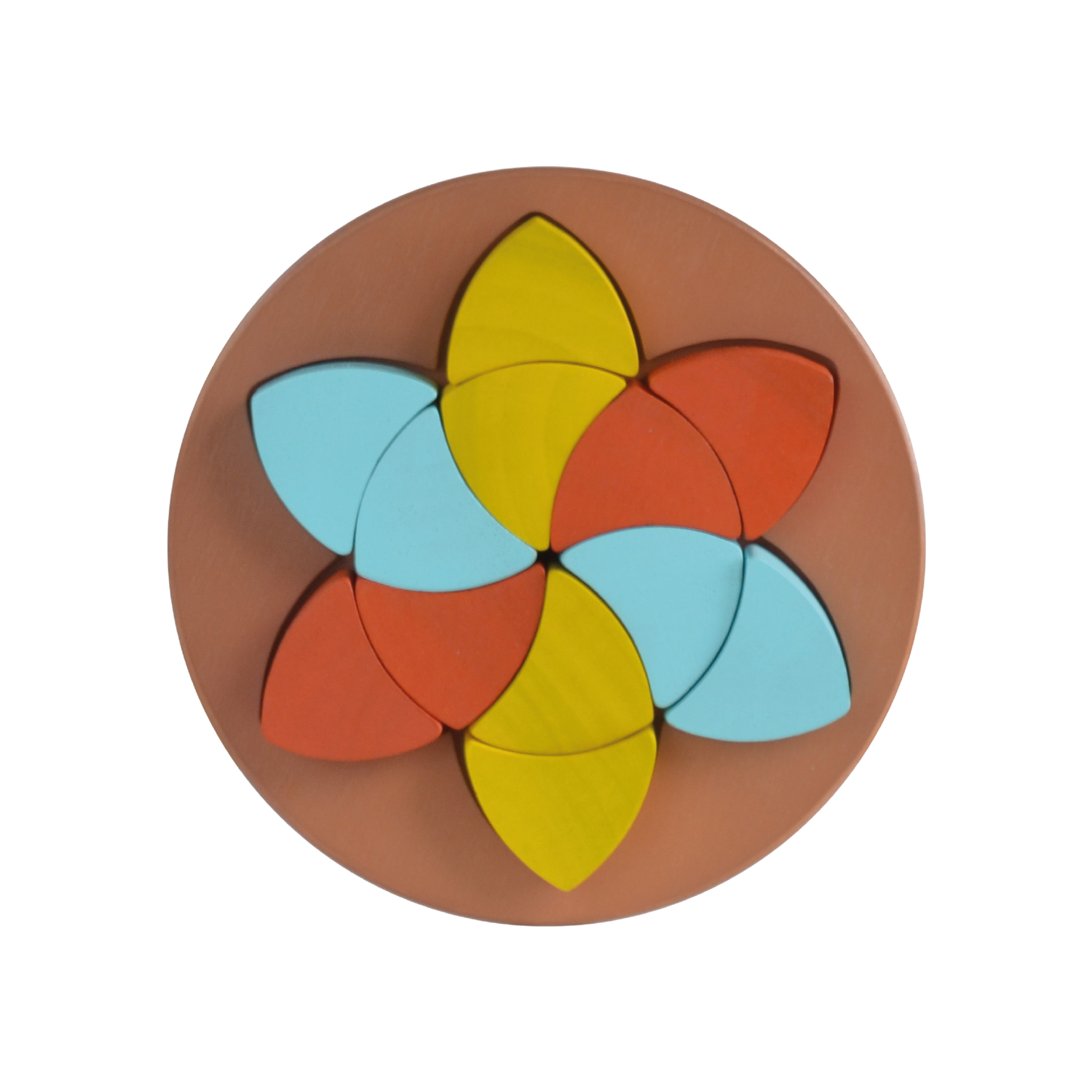 Fit these twelve single shape parquetry pieces into the provided slot. The shapes can be played outside the tray and configured to several interesting shapes. This toy is a great tool to enhance eye and hand coordination skills, introduce children to pattern making, and promotes creative thinking.